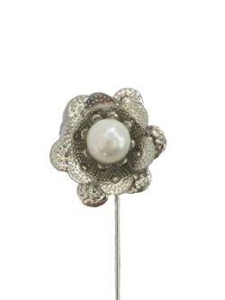 9 Pack Silver Flower Pins with a Pearl