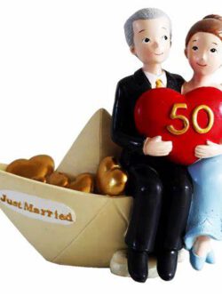 Wedding couple in a boat celebrating 50th anniversary – cake topper