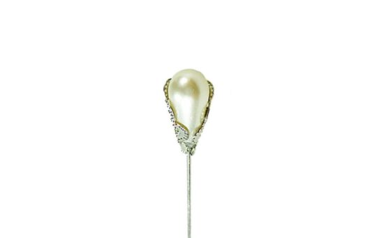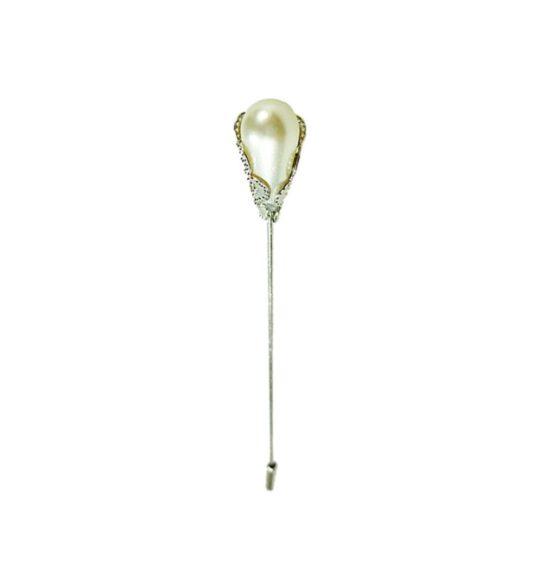 Silver pin with a calla flower design and a center pearl.