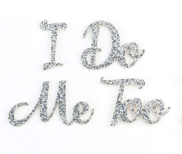 Divertido set de adhesivos con brillantes formando las palabras «I do» «Me Too».