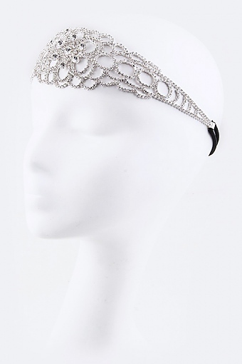 Add amazing bling to your ‘do’ with this magnificent lacey statement headband. The flexible rhinestone design spans 9″ across the head and 2 1/4″ w at the center. Our breaktaking bridal, prom or pageant headband has an elastic back for super comfort!