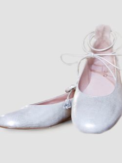 Communion shoe for girl in linen tied to the ankle. Available to order from size 31 to 40.