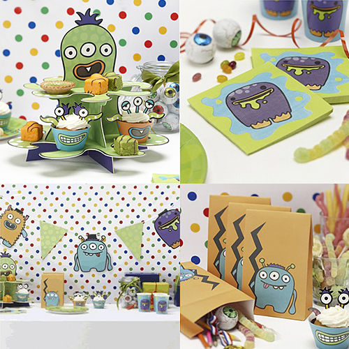 It also includes 40 (20 + 20) toppers in the shape of eyes with hair and arms so that you can give each cupcake the little monster face you want.