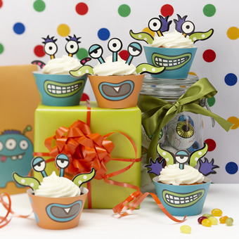-Monster Party Cupcake Toppers & Wraps Decorations (2 units)