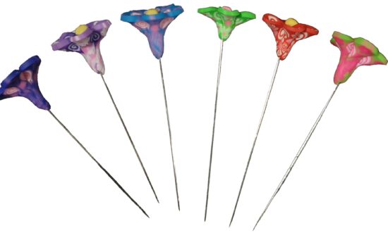 Este pack incluye alfileres de los siguientes colores: rojo, dos tonos de verde, dos tonos de morado y azul.