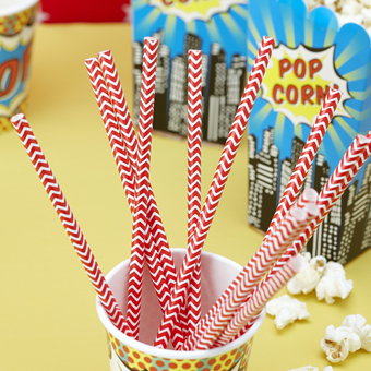 Pajitas de papel chevron en rojo y blanco. Preciosas, diveridas y originales. Perfectas para bodas, mesa de dulces, fiestas infantiles, etc.
