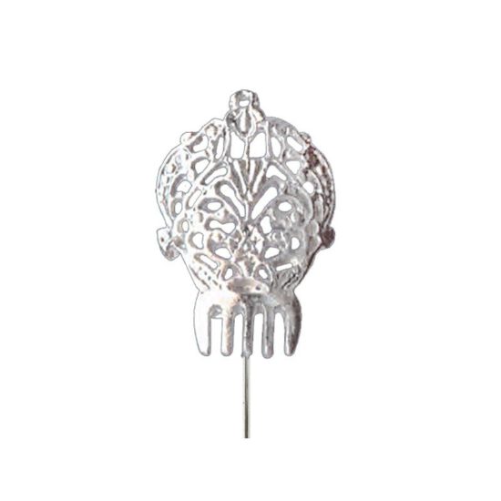 Pin with silver comb design and openwork details that give a refined and elegant appearance.