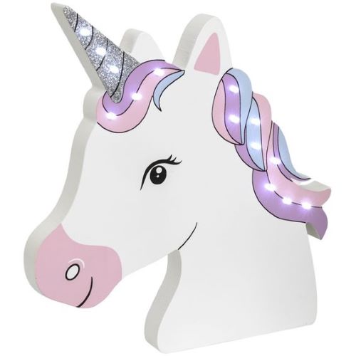 Beautiful led unicorn in white with details in pink, mauve and baby blue.