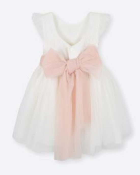 Disponible talla 7 manga larga vestido color blanco cinturón color rosa precio 82,50€