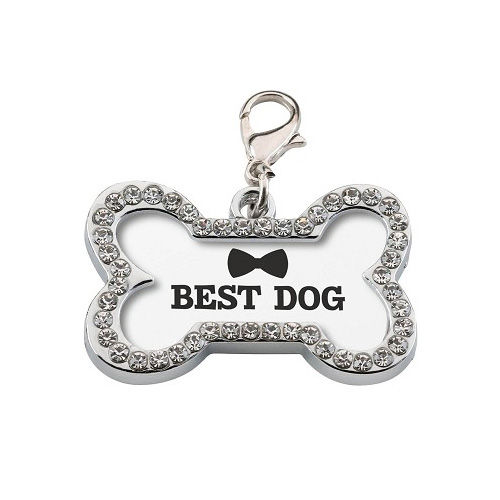 This collar charm is a great wedding accessory for your dog to show off on your big day! The bone shaped silver charm hooks on to the dogs collar and says “BEST DOG” with rhinestones around it and measures 1.5″ wide.
