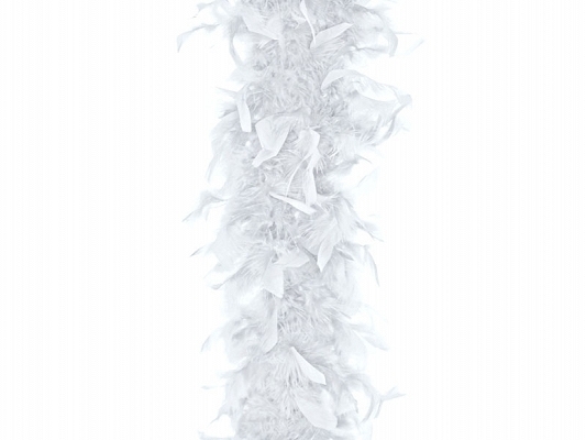 Wrap yourself in glamour with our feather boa. This white feather boa is the perfect finishing touch to a burlesque costume or a fan accessory to wear to a parade!!